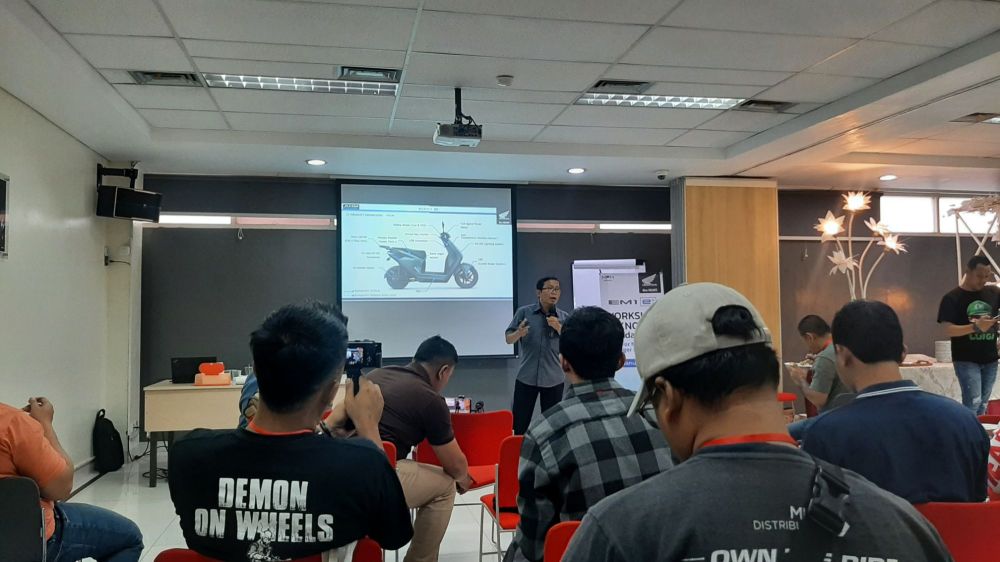 Dalam wokshop kali ini, mengupas tuntas teknologi motor Honda EM1 e: mulai dari Performa Honda EM1 e: dan Honda EM1 e: Plus, Fitur hingga tampilan designnya. Disampaikan oleh Instruktur MPM Honda Jatim, Yunus Ardi juga membahas mengenai keunngulan serta klasifikasi dari Honda EM1 e: dan EM1 e: plus.