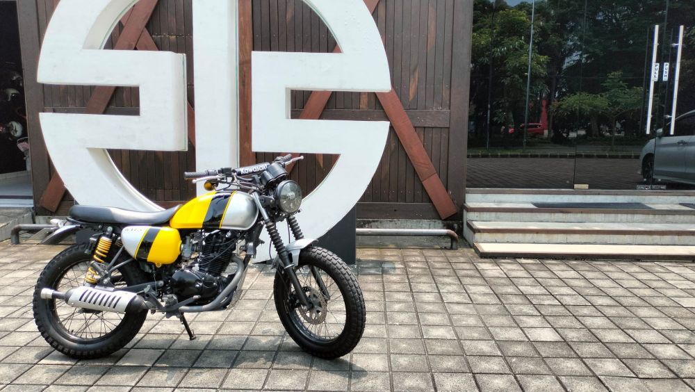 Salah satu hal yang menarik perhatian dari motor ini adalah perpaduan warnanya. Silver, hitam, dan kuning dikombinasikan dengan sempurna, menciptakan nuansa klasik yang modern. Warna silver memberikan kesan elegan dan berkelas pada bagian body, sedangkan warna hitam pada bagian mesin dan velg memberikan sentuhan maskulin dan sporty. Warna kuning pada bagian striping dan detail lainnya memberikan aksen yang cerah dan menarik. Selain itu, ukuran ban yang diperbesar dari ukuran standarnya juga menambah kesan yang lebih menawan pada motor ini.