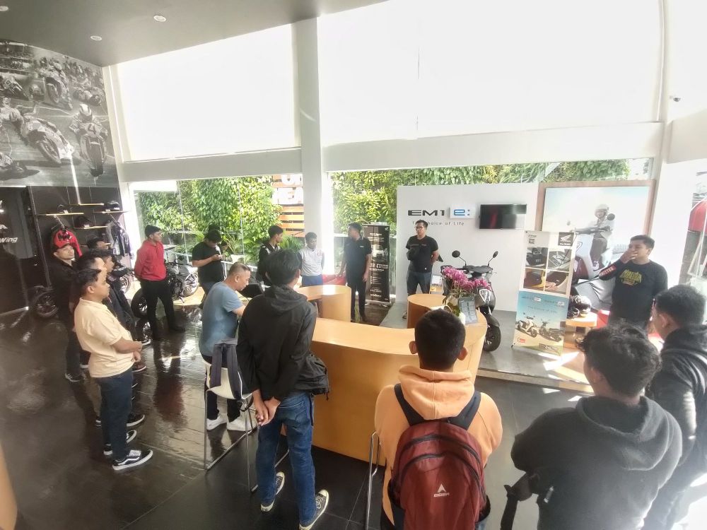 Diawali dengan pemaparan product knowledge Honda EM1 e: yakni untuk mengenal lebih dekat fitur-fitur unggulan dari motor listrik Honda hingga fitur safety yang disampaikan oleh Instruktur Safety Riding MPM Honda Jatim.