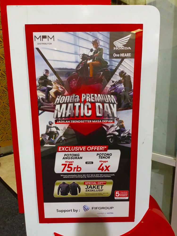 “Honda Premium Matic day kami hadirkan untuk memberikan kemudahan pada pecinta skutik di Jatim yang ingin memilki motor skutik premium Honda sesuai dengan kebutuhannya dan dapat meningkatkan rasa bangga konsumen saat mengendarainya.” kata Suhari selaku Marketing Communication & Development Division Head MPM Honda Jatim.