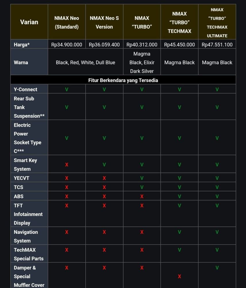Varian yang terdapat pada NMAX generasi terbaru dan apa perbedaan diantara varian-varian tersebut, simak penjelasannya di bawah ini :