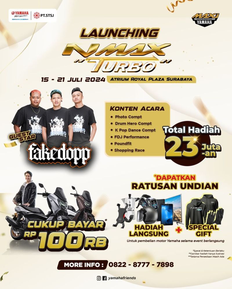 Sob, setelah peluncurannya di Jakarta pada bulan Juni 2024 lalu, PT. Surya Timur Sakti Jatim (Yamaha STSJ) selaku distributor motor Yamaha area Jawa Timur, Kalselteng, Kaltim, dan Nusa Tenggara menghadirkan unit motor terbaru paling canggih di jajaran skutik MAXi Yamaha yaitu NMAX “TURBO”. Skutik tersebut memiliki banyak sekali pembaruan, baik dari segi desain, fitur, dan juga performa mesin yang membuatnya menjadi motor paling canggih di segmen skutik premium 150cc saat ini. Berbagai fitur unggulan yang ditawarkan pada NMAX “TURBO” ini membuat rasa penasaran pada konsumen khususnya di area Jawa Timur.