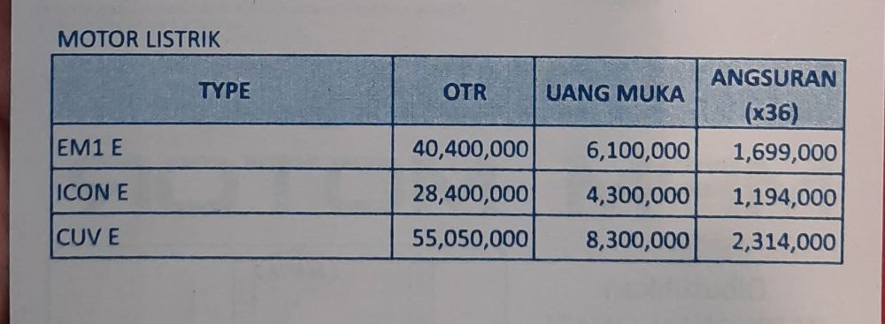 Harga untuk wilayah Blitar dan sekitarnya adalah Type Standart Rp 55.050.000, Type RoadSync Duo Rp 66.250.000. Sobat bisa memboyong CUVE e: ini dengan cara cash atau kredit dengan uang muka 8,3 juta rupiah.