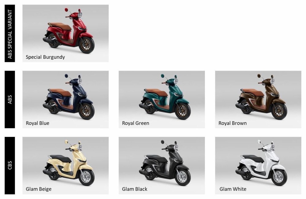 Pilihan varian ABS spesial terbaru yang dibalut warna Burgundy menghadirkan nuansa kemewahan yang semakin menonjol dan memberikan kebanggaan bagi pengendaranya. Tampilan varian spesial ini dilengkapi dengan berbagai kombinasi eksklusif seperti penggunaan seat two-tone, step floor berwarna coklat gelap, emblem Stylo berwarna copper yang senada dengan pegangan belakang. Tampilan mewah ini semakin spesial dengan penyematan Garnish Side Body dan Headlight Cap berwarna black chrome. Keseluruhan tampilan baru ini dipadukandengan performa mesin terbaik di kelasnya sehingga menjadikan motor ini semakin layak menjadi sorotan di jalan raya.