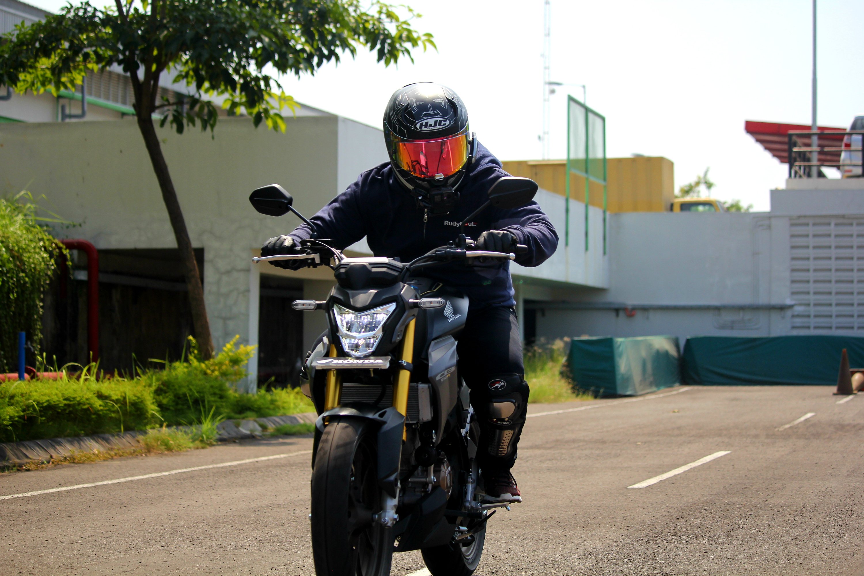 ” Edukasi dan latihan menggunakan motor type sport seperti CB ini untuk ketrampilan berkendara dengan memakai motor pribadi untuk mengetahui modif yang mereka pasangkan di motor mereka aman untuk dikendarai.” kata Fendrik Alam selaku Instruktur Safety Riding MPM Honda Jatim.