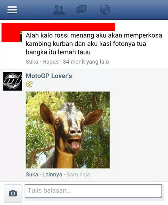 ejekan ke rossi Published 14/09/2014 at 552 × 674 in ejekan ke rossi Nasib si kambing sekarang gimana? Silahkan Share ke Teman Sobat. Bagikan ke X(Membuka di jendela yang baru) X Bagikan pada Facebook(Membuka di jendela yang baru) Facebook Bagikan ke WhatsApp(Membuka di jendela yang baru) WhatsApp Bagikan ke Linkedln(Membuka di jendela yang baru) LinkedIn Bagikan ke Telegram(Membuka di jendela yang baru) Telegram Lagi Berbagi di Tumblr(Membuka di jendela yang baru) Tumblr Cetak(Membuka di jendela yang baru) Cetak Kirim email tautan ke teman(Membuka di jendela yang baru) Surat elektronik Suka Memuat...