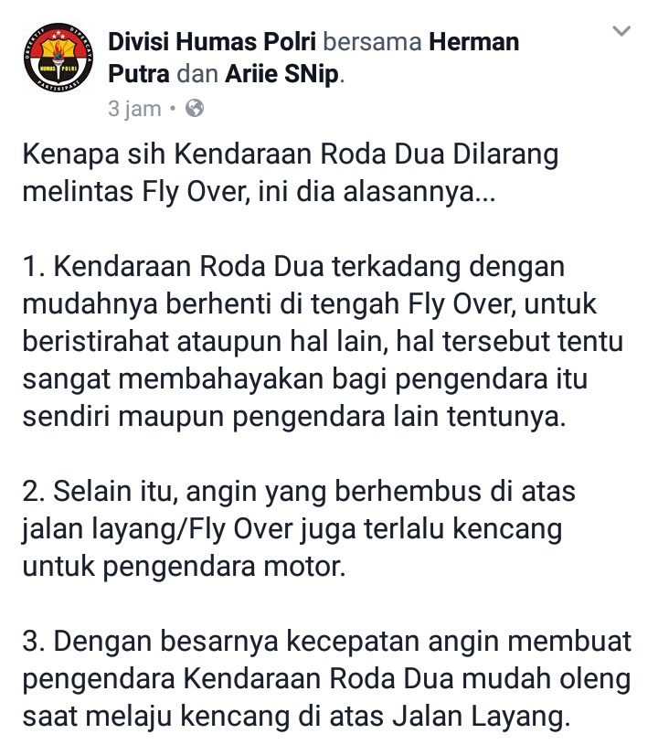 motor tidak bole lewat fly over Published 27/07/2017 at 720 × 826 in motor tidak bole lewat fly over Silahkan Share ke Teman Sobat. Bagikan ke X(Membuka di jendela yang baru) X Bagikan pada Facebook(Membuka di jendela yang baru) Facebook Bagikan ke WhatsApp(Membuka di jendela yang baru) WhatsApp Bagikan ke Linkedln(Membuka di jendela yang baru) LinkedIn Bagikan ke Telegram(Membuka di jendela yang baru) Telegram Lagi Berbagi di Tumblr(Membuka di jendela yang baru) Tumblr Cetak(Membuka di jendela yang baru) Cetak Kirim email tautan ke teman(Membuka di jendela yang baru) Surat elektronik Suka Memuat...