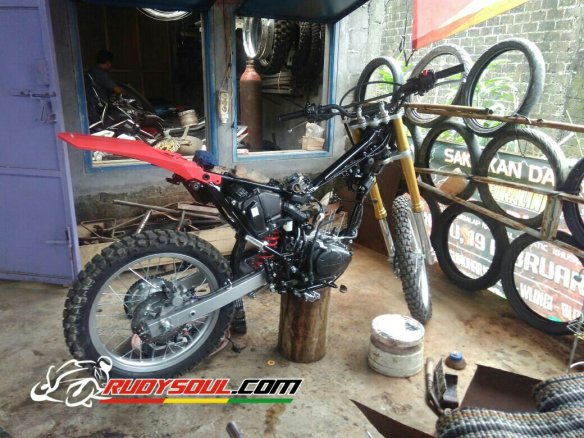 Hanjir.. naik CRF150L kedua kaki RudySouL hampir nggantung sob.