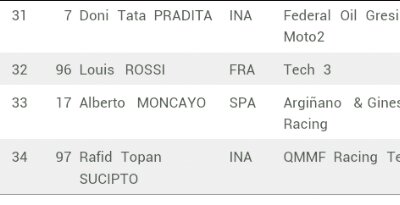 Sob,melihat hasil lomba masak kualifikasi diatas tentunya kita sebagai warga sebangsa dan setanah air dengan Doni Tata dan Rafit Topan akan trenyuh (sedih) karena pembalap kita ada diposisi “maaf” buncit 😦