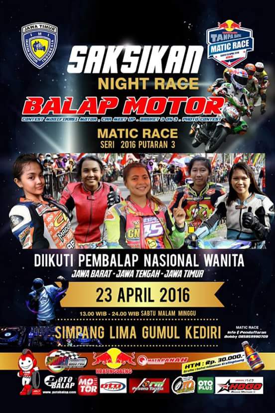 Sob,sukses digelar Matic Race Seri 1 yang berlangsung di Sirkuit Minak Sopal Trenggalek yang dibanjiri hingga 6.000 penonton,seri lanjutan (seri 2) akan segera berlangsung di bulan ini bertempat di Sirkuit Lingkar Stadiun Spriyadi Kota Blitar.