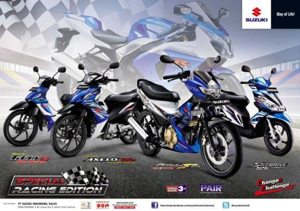 Sob,mengawali tahun 2o12 Suzuki memperkenalkan Suzuki Racing Edition ,dimana ada 4 jagoan Suzuki yang memakai baju kkas Suzuki GSX,hheemm….racing abizz..deh.. !saya kepincut dengan baju baru Skydrivenya wehh…gilee..cakep banget 😀